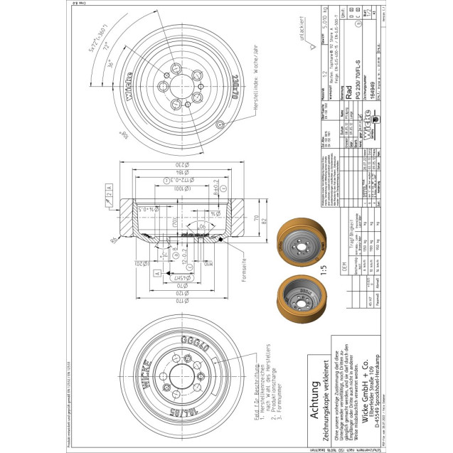 Wicke 164949 PG 230/ 70-184/FL-S AS:5/ 70/45H7 D:14 3xM10 Drive Wheel