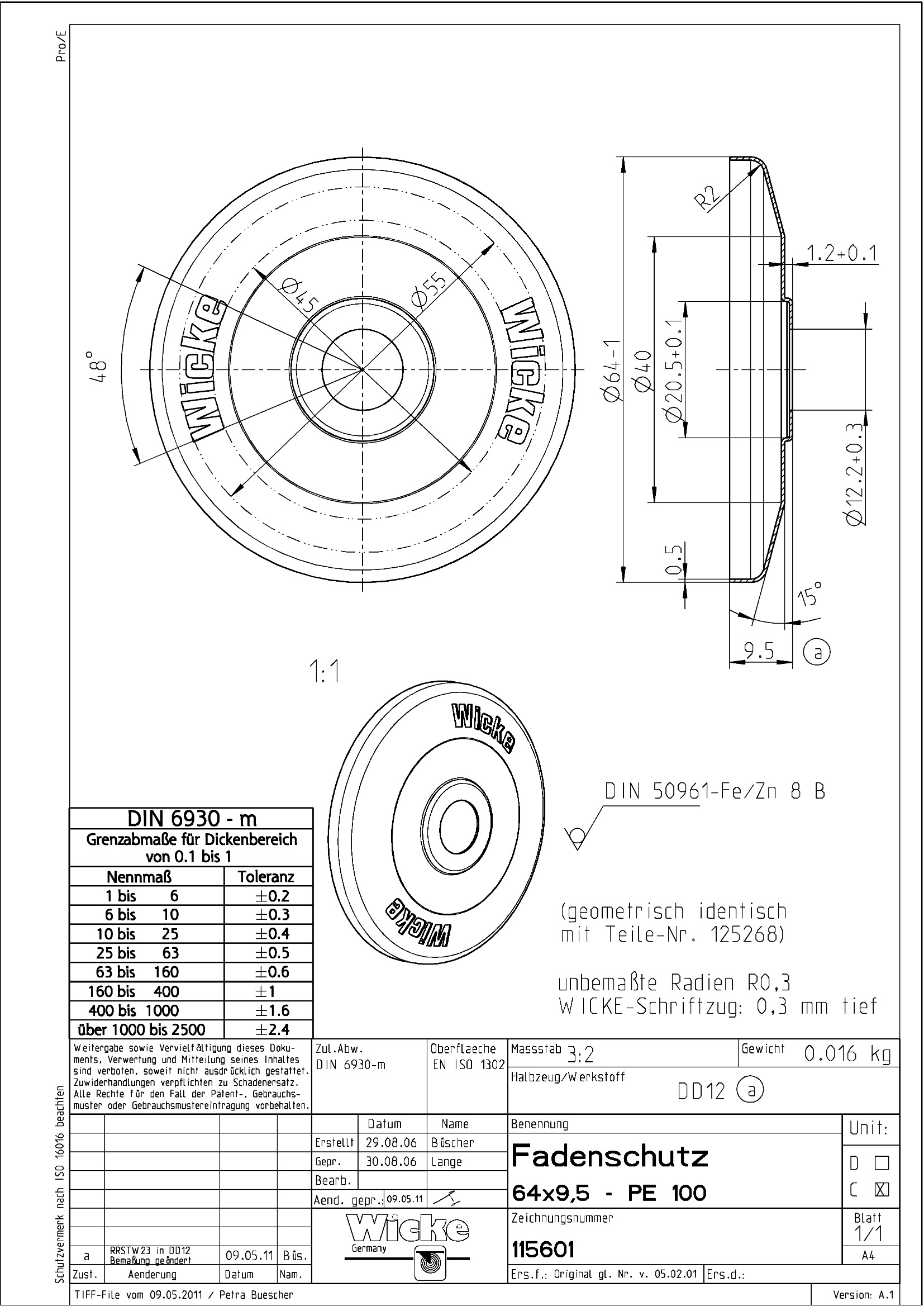 64 X 9,5 BO:12,2 D: 40 VZ PE 100/2K T=0,5 kg