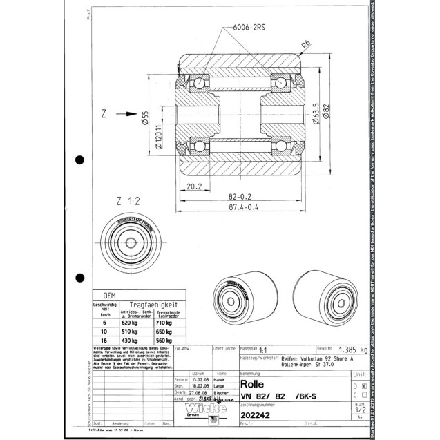 202242, VN 82/82/6K-S,Load Roller of the series VN are made of a high quality steel vulcanised/ pres..