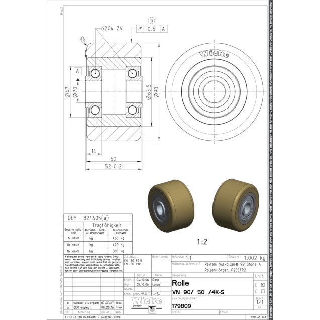 Wicke ROLLER VN 90/ 50 /4K-S With 6204-ZZV Bearings