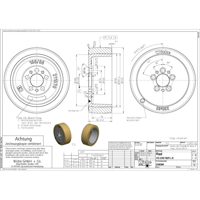 Wicke 164949 PG 230/ 70-184/FL-S AS:5/ 70/45H7 D:14 3xM10 Drive Wheel PG wheels are made of a ..
